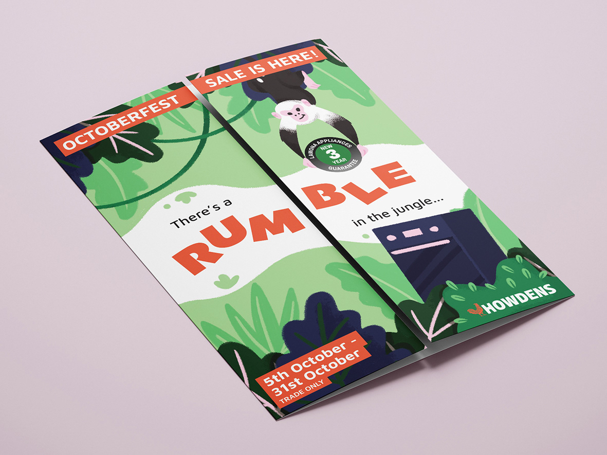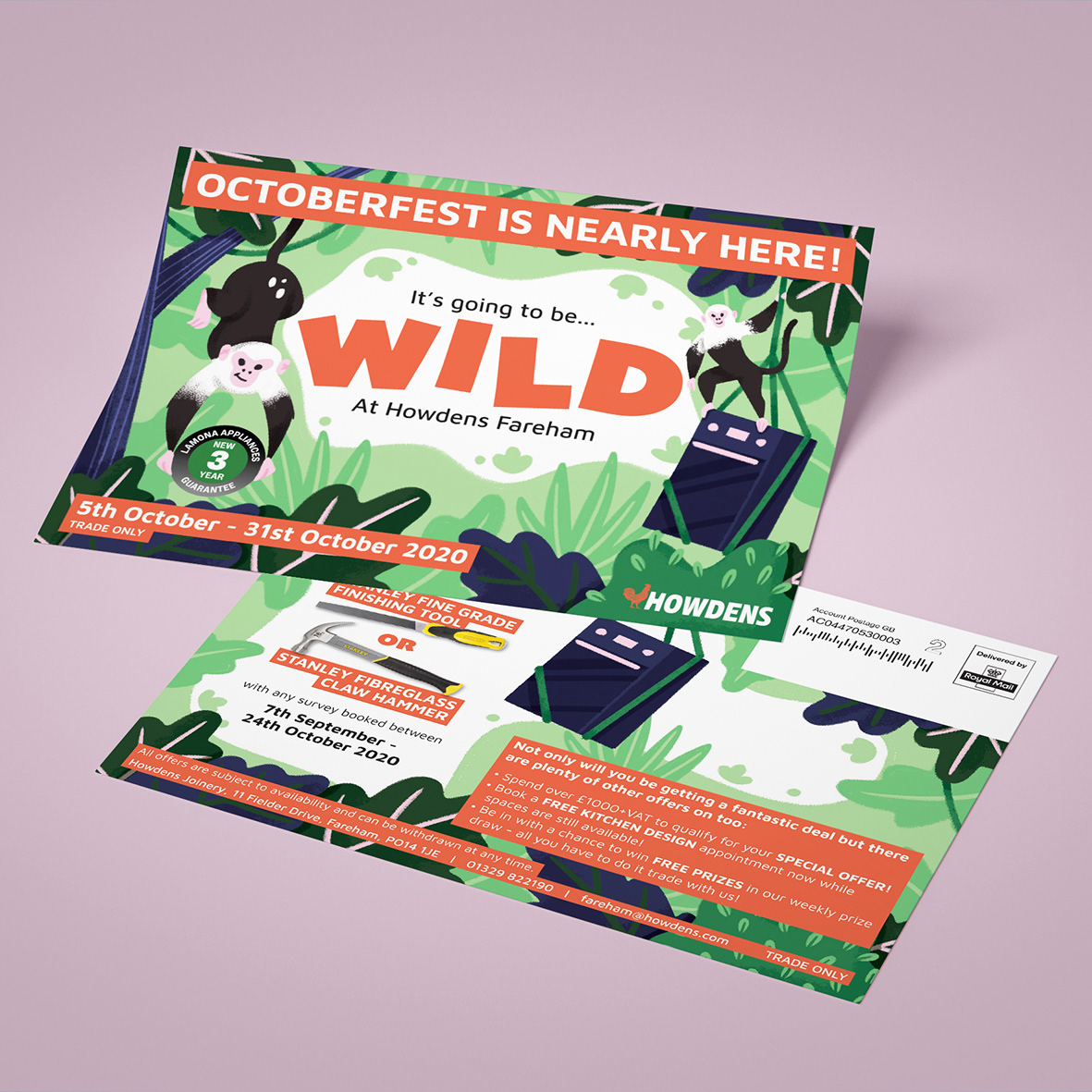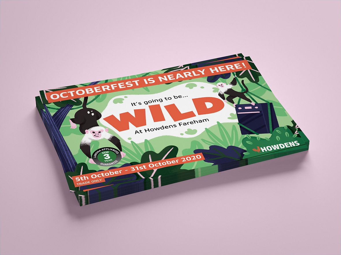 This was my second time working on the Octoberfest promotional material for Howdens, Fareham. This year the theme was jungle, and the idea was to emphasise the 'wild' deals on offer.