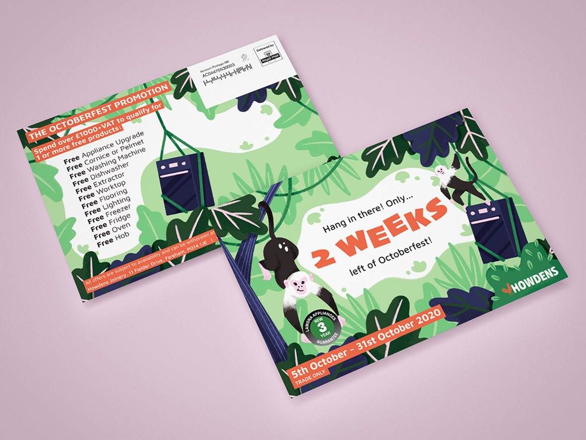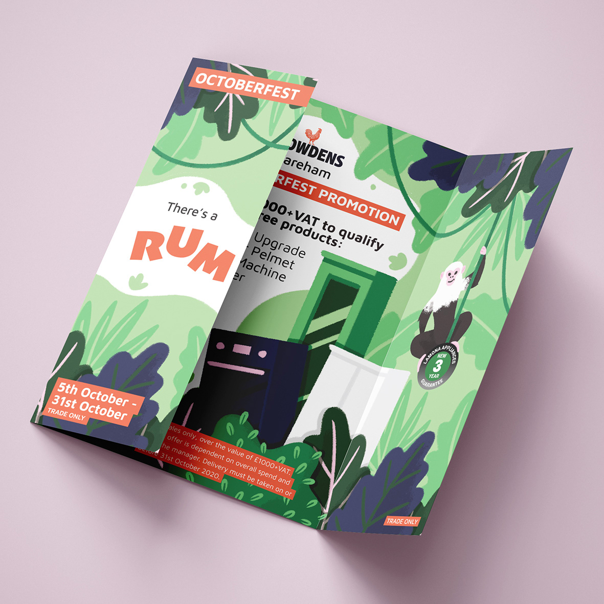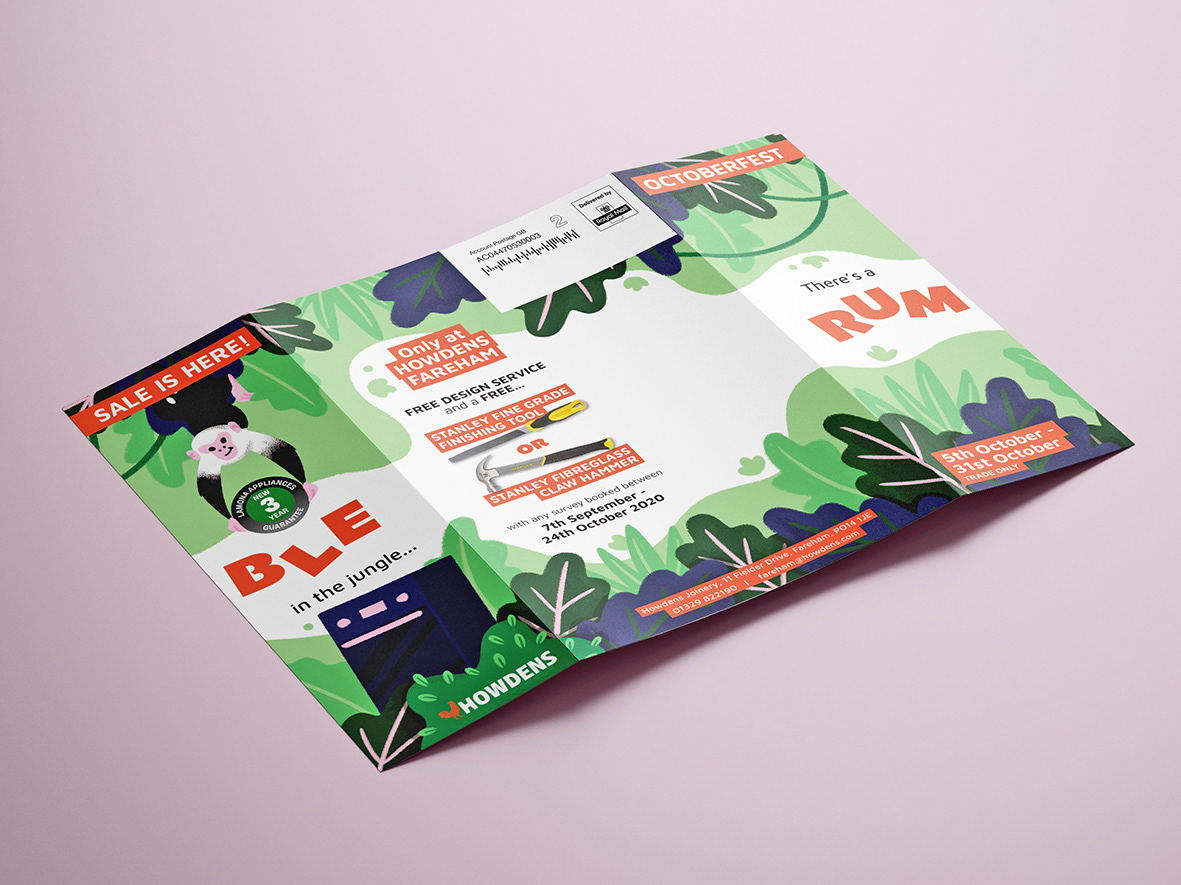 This was my second time working on the Octoberfest promotional material for Howdens, Fareham. This year the theme was jungle, and the idea was to emphasise the 'wild' deals on offer.